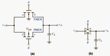 In a digital system, a transistor can act as a switch between a driving circuit and a load circuit. An NMOS transistor that performs this function is called an NMOS transmission gate; the corresponding CMOS configuration is a CMOS transmission gate. These transmission gates, or pass transistors, can also be configured to perform logic functions, and the circuits are called NMOS-pass or CMOS-pass networks. We will discuss the basics of these networks.