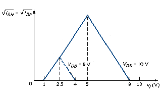 where and are the drain-to-source and gate-to-source voltage, respectively, at the transition point. Substituting [link] into [link], the input voltage at the transition point is the determined from