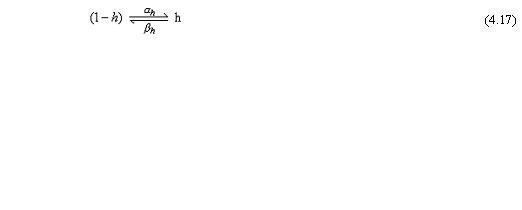 Trong đó: αh là hệ số tốc độ truyền đạt đối với phần tử h từ trạng thái khử hoạt tính sang trạng thái không khử hoạt tính [1/s] βh là hệ số tốc độ truyền đạt đối với phần tử h từ trạng thái không khử hoạt tính sang trạng thái khử hoạt tính [1/s], h là tỷ lệ của phần tử h ở trạng thái khử hoạt tính.