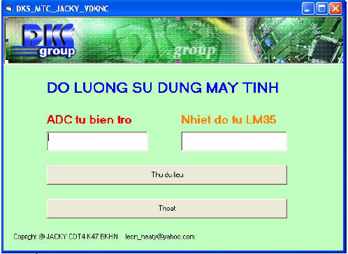 2 button: Thu du lieu và Thoat khỏi phần mềm.