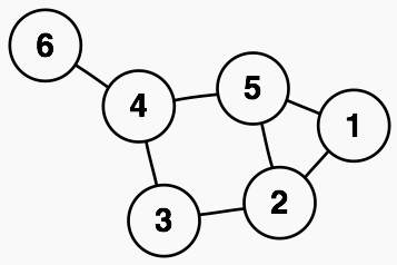 - E:={{1,2},{1,5},{2,3},{2,5},{3,4},{4,5},{4,6}}