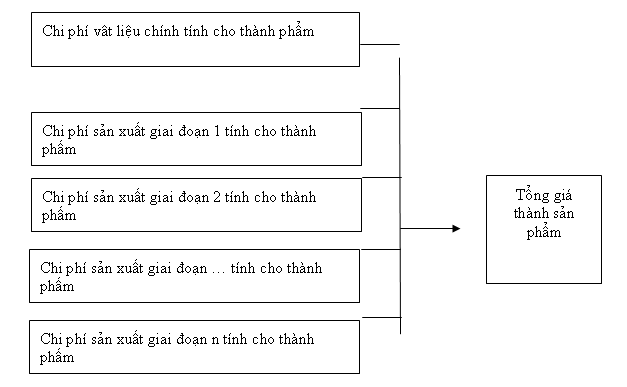 + Chi phí sản xuất của từng giai đoạn trong thành phẩm đã tính được sẽ kết chuyển song song từng khoản mục để tổng hợp tính ra tổng giá thành và giá thành đơn vị của chúng.