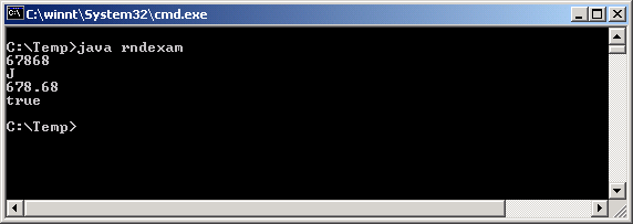 Chương trình dưới đây minh hoạ cách dùng lớp RandomAccessFile. Nó ghi một giá trị boolean, một int, một char, một double tới một file có tên ‘abc.txt’. Nó sử dụng phương pháp seek( ) để tìm vị trí định vị bên trong tập tin (bắt đầu từ 1). Sau đó nó đọc giá trị số nguyên, ký tự và double từ tập tin và hiển thị chúng ra màn hình.