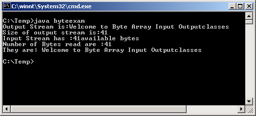 - Lớp ByteArrayInputStream tạo ra một luồng nhập từ vùng đệm bộ nhớ trong khi ByteArrayOutputStream tạo một luồng xuất trên một mãng byte.