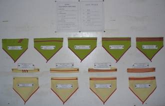 - Develop and apply a system of bars or flags to distinguish employees at different level at the same major group (See diagram one). For example, blue hats with 2 short bars for workers, 1 long horizontal bar for sub-section leaders, 2 long bars for assistant supervisor and 3 long bars for supervisor.