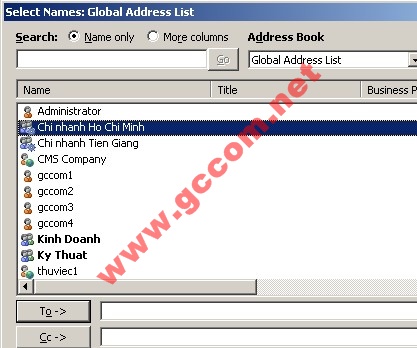 Đến đây thay vì gccom1 có nhu cầu gởi email cho gccom3 & gccom4 thì chỉ cần chọn Group Ky Thuat mà thôi