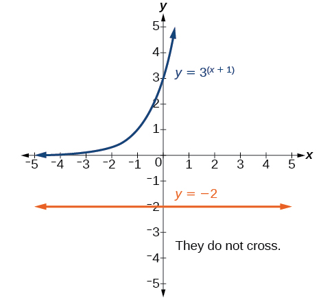 This equation has no solution. There is no real value ofthat will make the equation a true statement because any power of a positive number is positive.