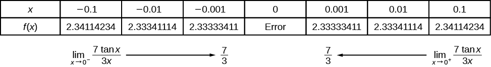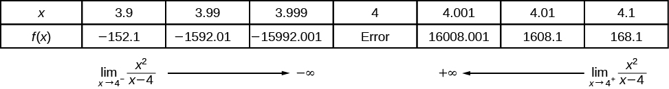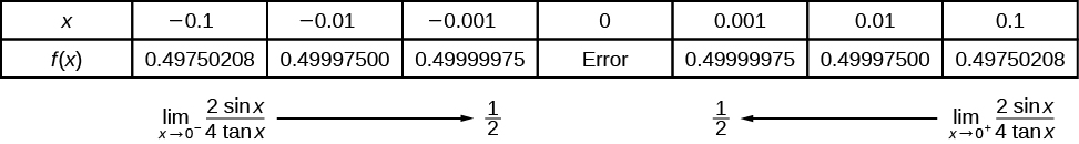 We can approach the input of a function from either side of a value—from the left or the right. [link] shows the values of