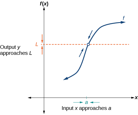 [link] provides a visual representation of the mathematical concept of limit. As the input valueapproaches the output valueapproaches