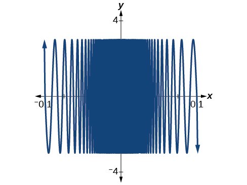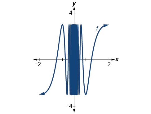 The closer we get to 0, the greater the swings in the output values are. That is not the behavior of a function with either a left-hand limit or a right-hand limit. And if there is no left-hand limit or right-hand limit, there certainly is no limit to the functionasapproaches 0.