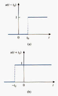 The unit step function u(t) is 0 for negative values of t and 1 for positive values of t.