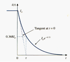 The time constant of a circuit is the time required for the response to decay by a factor of 1/e or 36.6 percent of its initial value.