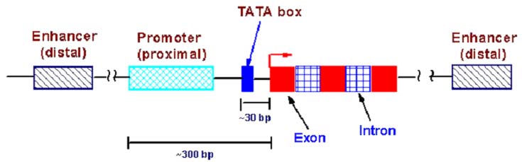 Cuối những năm 1970, người ta phát hiện thấy ở eukaryote có những đoạn ADN không mã hóa cho các acid amin trên phân tử protein. Trong khi toàn bộ DNA prokaryote đều mang thông tin mã hóa cho các protein, thì ở eukaryote, phân tử DNA bao gồm các trình tự mã hóa gọi là các exon xen kẽ với các trình tự không mã hóa gọi là intron. Một phân tử mRNA vừa mới được phiên mã từ một gen cấu trúc thì chưa có hoạt tính; phân tử này phải trải qua một quá trình ghép nối, loại bỏ các intron để trở thành phân tử mRNA trưởng thành có khả năng tham gia dịch mã. Khái niệm gen được chỉnh lý như sau: “Gen là một đoạn ADN đảm bảo cho việc tạo ra một polypeptide, nó bao gồm cả vùng trước, vùng sau và vùng mã hóa cho protein, cả những đoạn mã hóa (exon) lẫn những đoạn không mã hóa (intron) của eukaryote”.