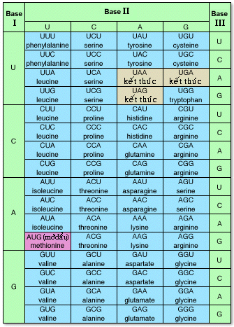 Bảng mã di truyền (mRNA)