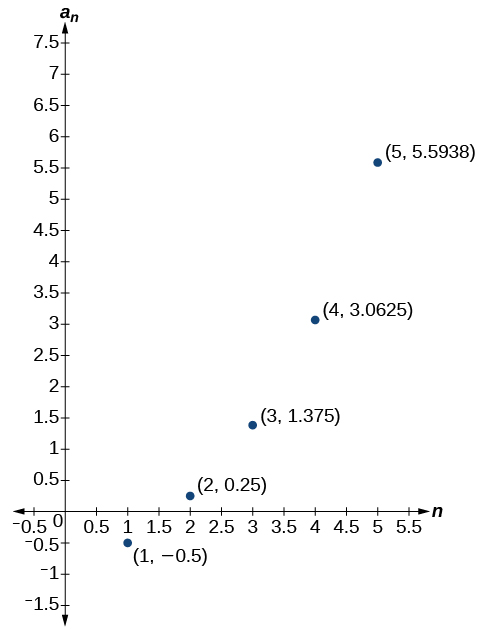For the following exercises, use the information provided to graph the first five terms of the geometric sequence.