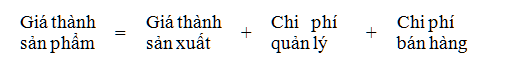 - Giá thành tiêu thụ (hay còn gọi là giá thành toàn bộ hay giá thành đầy đủ ): là chỉ tiêu phản ánh toàn bộ các khoản chi phí phát sinh liên quan đến việc sản xuất, tiêu thụ sản phẩm. Giá thành tiêu thụ được tính theo công thức sau: