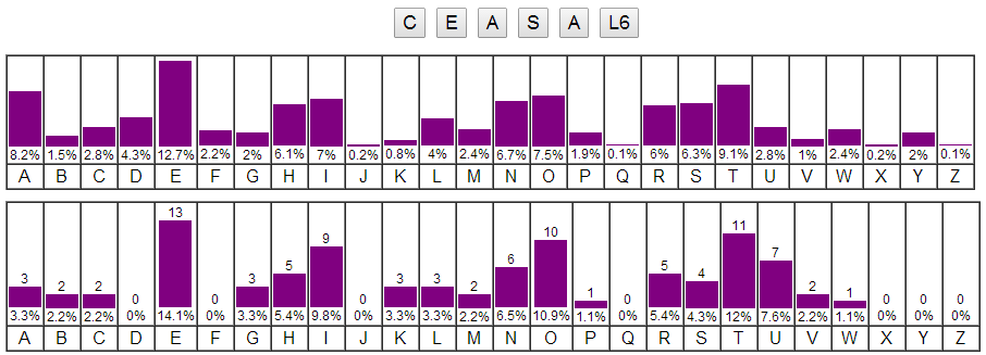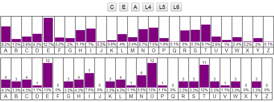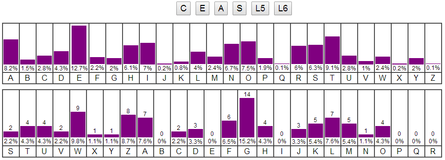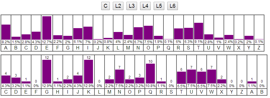 sau đây là bảng tần xuất với 5 kí tự còn lại: