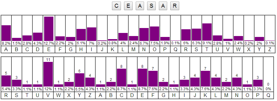 ở bước này, độ dài khóa đã biết, vậy thì chúng ta cũng biết được chu kì lặp lại của từ khóa để mã hóa. Vậy thì giả sử từ khóa có 6 chữ cái, mình gọi là ABCDEF, bây giờ thì nhìn vào đoạn mã hóa, các chữ cái cách nhau 6 vị trí sẽ được mã hóa bởi một chữ cái của từ khóa. Vậy thì công việc bây giờ chỉ là thống kê và tìm chữ cái đó tương tự như giải mã Ceasar.