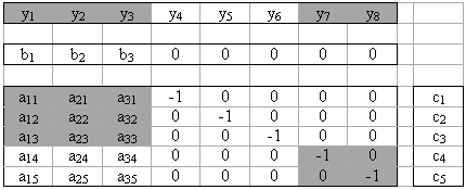 Bảng này cho ta một quy hoạch tuyến tính dạng chuẩn với ma trận đơn vị (cơ sở) tương ứng với các cột y1 y2 y3 y7 y8 .