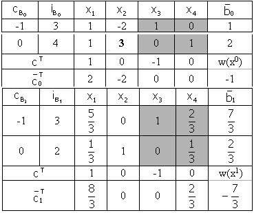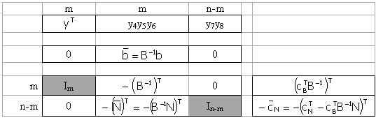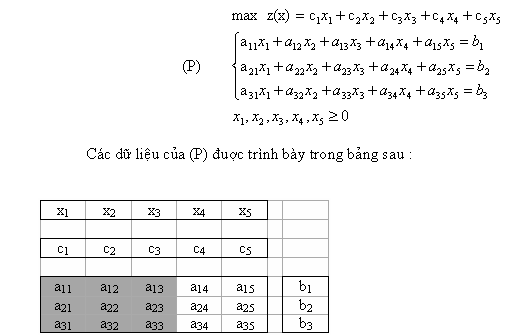 Giả sử rằng m cột đầu tiên của A là một cơ sở B của (P) thì hai bảng trên được trình bày rút gọn như sau :