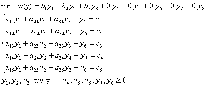 Người ta đưa (D) về dạng chính tắc bằng cách thêm các biến phụ y4 y5, y6, y7, y8 ≥ 0. Chúng không ảnh hưởng đến hàm mục tiêu.