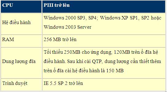 - Sử Dụng QTP a. Yêu cầu cấu hình hệ thống: b. Bản quyền sử dụng: