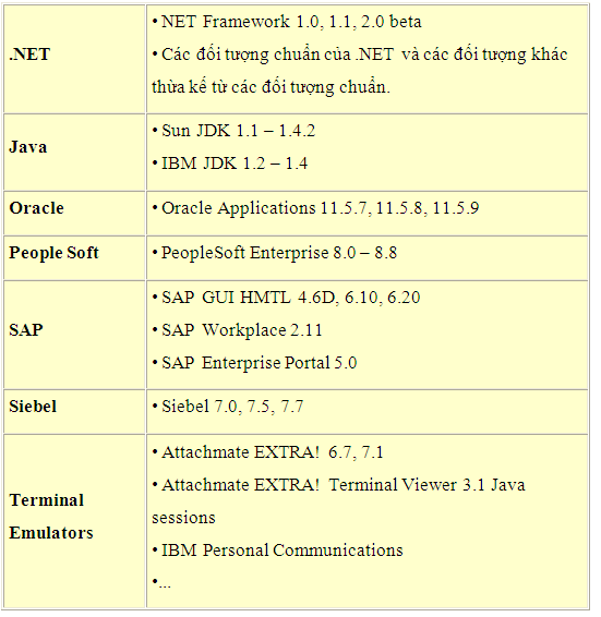 Trong lĩnh vực KTTĐ hiện có khá nhiều TT thương mại nổi tiếng, phổ biến như QuickTest Professional, WinRunner, Rational Robot, SilkTest, JTest,... Trong số đó, QuickTest Professional (QTP) phiên bản 8.2 của hãng Mercury khá tốt và mạnh, bao gồm nhiều chức năng điển hình của một công cụ kiểm tra tự động. Lưu ý là QTP 8.2 đã có một cái tên mới hơn là Mercury Functional Testing 8.2. QTP là TT dùng để kiểm tra chức năng (functional test) và cho phép thực hiện kiểm tra hồi qui (regression test) một cách tự động. Đây cũng là công cụ áp dụng phương pháp Keyword-Driven, một kỹ thuật scripting (lập trình trong KTTĐ) hiện đại, cho phép KTV bổ sung test case bằng cách tạo file mô tả cho nó mà không cần phải chỉnh sửa hay bổ sung bất cứ script nào cả. Nó cũng phù hợp trong tình huống chuyển giao công việc mà người mới tiếp nhận chưa có thời gian hoặc không hiểu script vẫn có thể thực hiện kiểm tra PM theo đúng yêu cầu. 1. Loại phần mềm hỗ trợ QTP giúp chúng ta KTPM theo hướng chức năng trên rất nhiều loại chương trình phần mềm khác nhau. Tuy nhiên Mercury chỉ hỗ trợ sẵn một số loại chương trình thông dụng như: • Ứng dụng Windows chuẩn/Win32. • Ứng dụng web theo chuẩn HTML, XML chạy trong trình duyệt Internet Explorer, Netscape hoặc AOL. • Visual Basic. • ActiveX. • QTP hỗ trợ Unicode (UTF-8, UTF-16). Một số loại chương trình khác đòi hỏi chúng ta phải cài đặt thêm thành phần bổ sung của QTP thì mới thực hiện kiểm tra được. Các loại chương trình đó là: