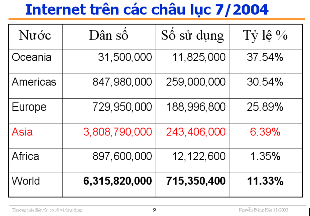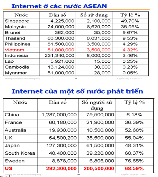 Hình 1.3: Tình hình phát triển Internet ở một số nước