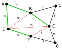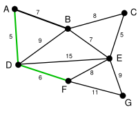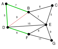 Kruskal's algorithm is an algorithm in graph theory that finds a minimum spanning tree for a connected weighted graph. This means it finds a subset of the edges that forms a tree that includes every vertex, where the total weight of all the edges in the tree is minimized. If the graph is not connected, then it finds a minimum spanning forest (a minimum spanning tree for each connected component). Kruskal's algorithm is an example of a greedy algorithm.