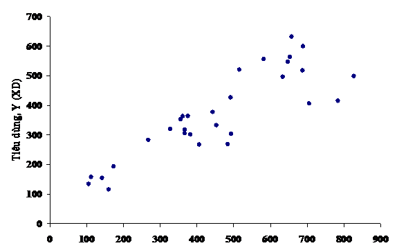 Hình 3.1. Đồ thị phân tán quan hệ giữa tiêu dùng và thu nhập khả dụng.