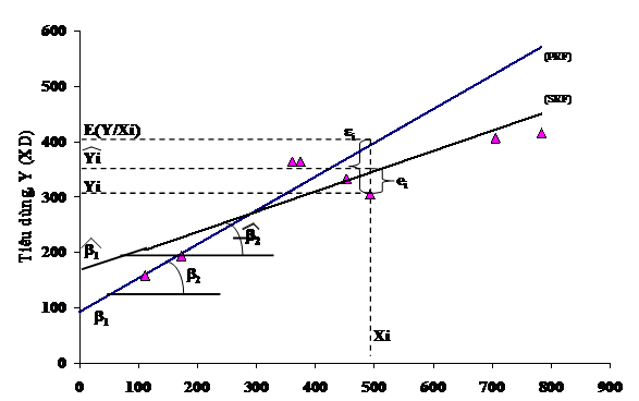 Hình 3.3. Hồi quy mẫu và hồi quy tổng thể