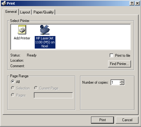 Ví dụ : In dòng chữ ra máy in được chọn từ hộp thoại in chuẩn.