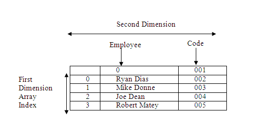 Ta có thể tạo ra một mảng hai chiều để lưu trữ mã nhân viên và tên của nhân viên đó.