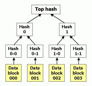 In cryptography, hash trees (also known as Merkle trees) are an extension of the simpler concept hash list, which in turn is an extension of the old concept of hashing.