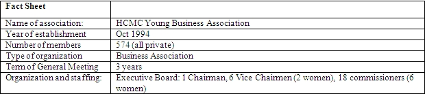 Founded in 1994, the Ho Chi Minh City Young Business Association (YBA) was the first association expressly for young businesspeople in Vietnam. Its mission is to gather young entrepreneurs together to develop their business skills as well as to contribute to the development of the local and national economy. YBA’s major goal is to become a professional business support organization to better meet the increasing needs of members and to help them compete when Vietnam enters the global market.