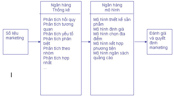 [link] minh họa khái niệm về MDSS. Giả sử một nhà quản trị Marketing cần phân tích một vấn đền thông qua một biện pháp. Nhà quản trị đặt các câu hỏi cho mô hình tương ứng trong MDSS. Mô hình đó rút ra những số liệu đã được phân tích thống kê. Sau đó nhà quản trị có thể sử dụng một chương trình để xác định cách triển khai tối ưu biện pháp. Nhà quản trị thi hành biện pháp đó và biện pháp đó cùng với các lực lượng khác, tác động lên môi trường và cho kết quả là những số liệu mới.