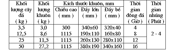 Số lượng khuôn đá được xác định dựa vào năng suất bể đá và khối lượng cây đá: