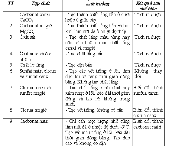 Để sản xuất đá trong bắt buộc phải sử dụng nguồn nước chất lượng tốt thoả mãn các điều kiện nêu trong bảng 3-3.