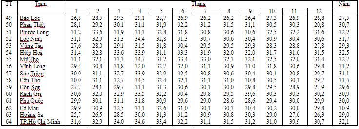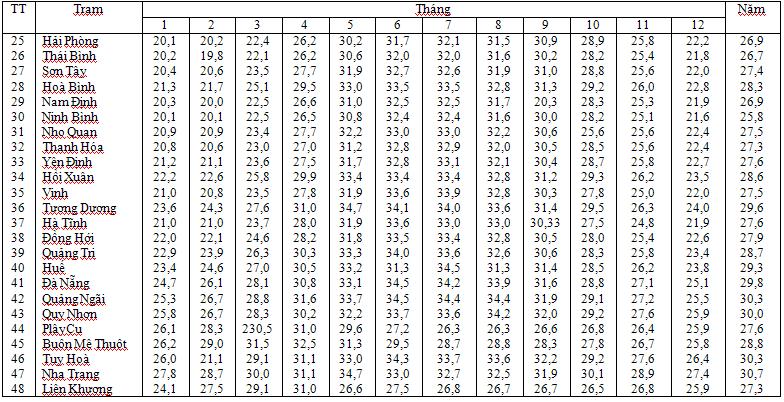 Phục lục PL-2 : Nhiệt độ trung bình lớn nhất các ngày trong tháng ttbmax (tiếp theo)