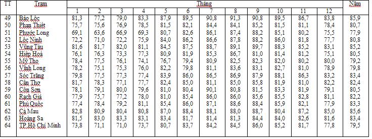 Phụ lục PL-4 : Độ ẩm tương đối trung bình trong tháng, φtb (tiếp theo)
