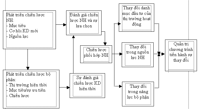 - Chất xúc tác bên ngoài: Hầu hết những thay đổi chính trong hệ thống chiến lược của ngân hàng xảy ra do điều hành của lãnh đạo ngân hàng trong sự liên kết với các xúc tác bên ngoài, đặc biệt là các tư vấn về quản trị.