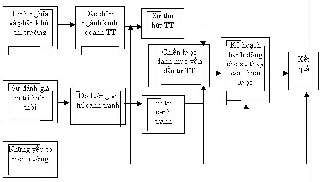 Điều quan trọng là xem xét lại vị trí của NH trong mỗi thị trường trong đó nó hoạt động hoặc có kế hoạch hoạt động. Những khoản mụûc sau đây là những đơn vị đo lường quan trọng của thế mạnh cạnh tranh: