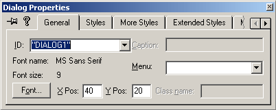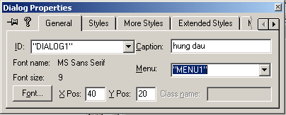 Lưu ý : Các thông số định tọa độ và kích thước của hộp thoại không tính theo đơn vị Pixel mà tính theo kích cở của Font chữ. Số đo của tọa độ x và chiều rộng dựa trên 1/4 đơn vị rộng trung bình của Font chữ. Số đo của tọa độ y và chiều cao dựa trên 1/8 đơn vị cao trung bình của Font chữ.
