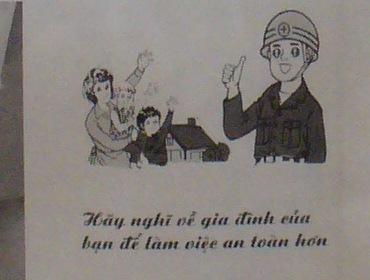 - Use creative slogans, such as the one reminding workers about their family, to encourage workers to wear PPEs for their own health and safety.