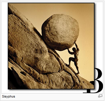 Các vị thần đã bắt Sisyphus phải chịu hình phạt không ngừng lăn một tảng đá lên tới đỉnh một ngọn núi, để rồi tảng đá lại bị sức nặng của chính nó kéo cho rơi xuống đất. Họ đã nghĩ, cũng với một cái lý, là không có sự trừng phạt nào khốc liệt hơn sự lao động hoài công và vô vọng.