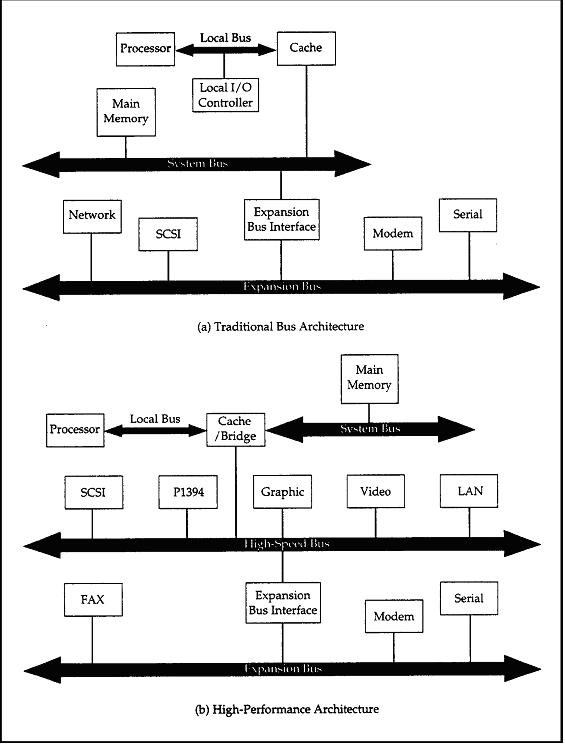 – Slower-speed general access buses farther away from the processor.