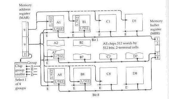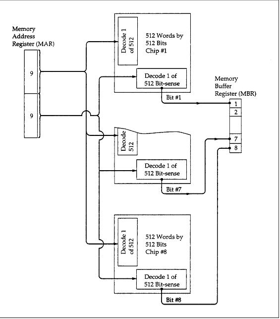 Each memory chip contains a number of 1-bit cells. The 1, 4, and 16 million cell chips are common. The cells can be arranged as a single bit column (e.g., 4Mx1) or in multiple bits per address location (e.g., 1Mx4)