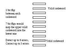 – Distribute the 2M valid data words among the 2 M+K codeword combinations such that the “distance” between valid words is sufficient to distinguish the error