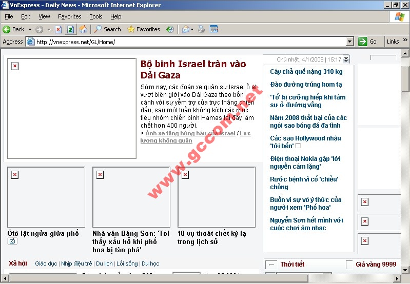 Trở lại máy PC02 Logon với gccom1 và truy cập lại trang google.com.vn sẽ thấy Web Browser không hiển thị trang báo lỗi mặc định của ISA Server nữa mà đã tự chuyển về trang Web mà ta tạo lúc nãy