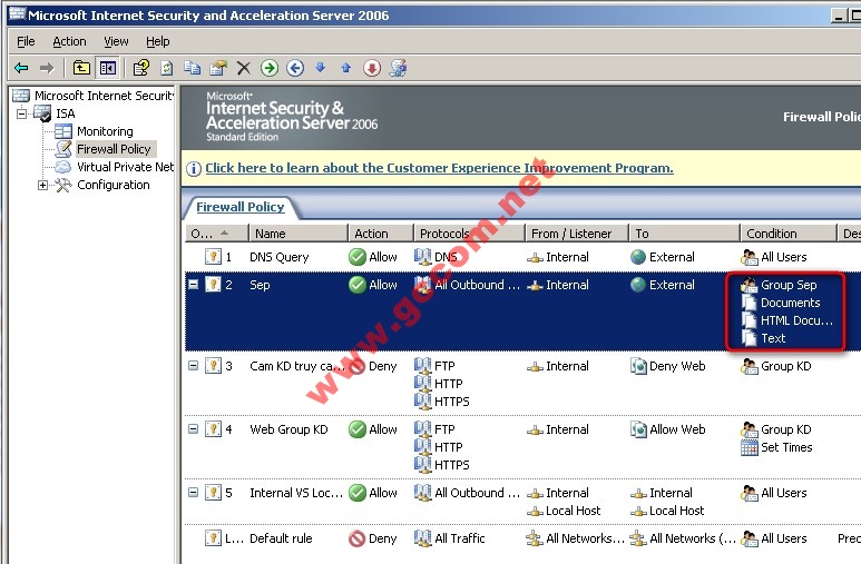 Tại PC01 bật ISA Server lên tạo tiếp một Access Rule mới đặt tên là Sep